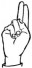 На ћирилици написано МИОДРАГ КРГА састоји се из 11 слова [?]. Исписано ћириличном једноручном азбуком за глувонеме: